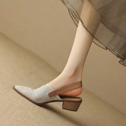 New Pointed Toe Color Block One-Strap Open Toe High Heel