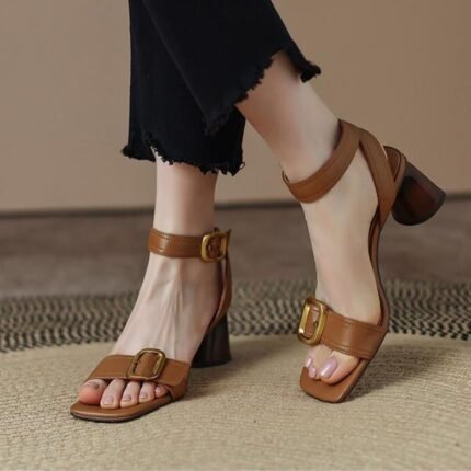 New Pointed Toe Color Block One-Strap Open Toe High Heel