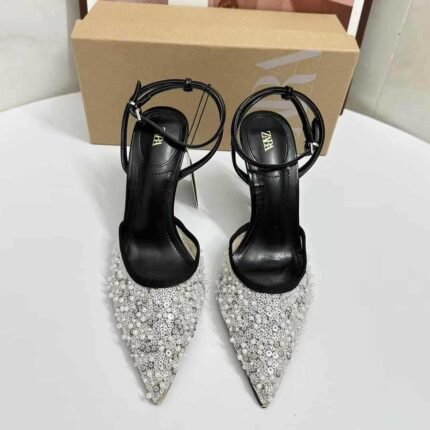 New Style Mesh Sequin Pearl Stiletto High Heels for Women