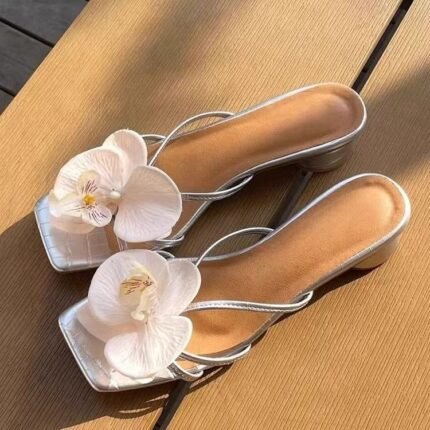 Heeled Fashion Sandals With Rhinestone Bow Decoration