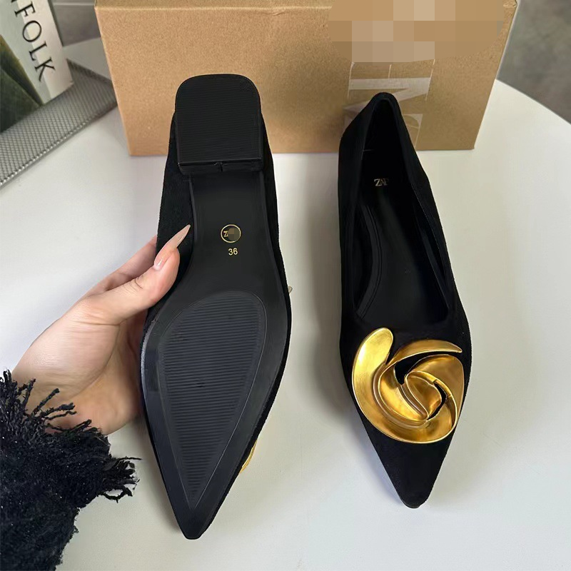 Be the first to review “Black Suede Ballet Flats With Metallic Flower Embellishments” Cancel reply