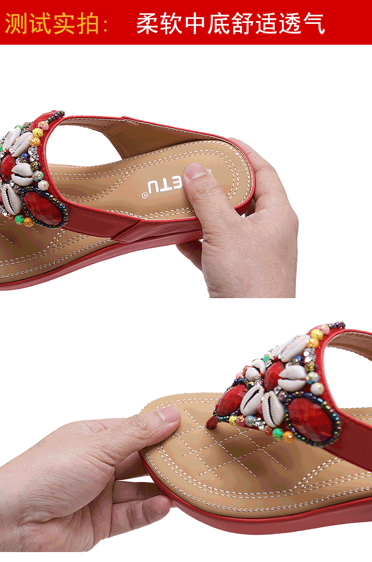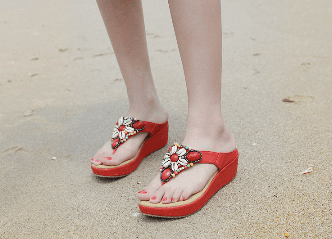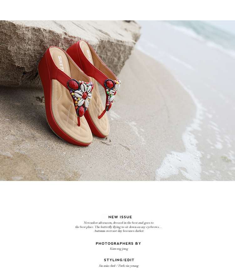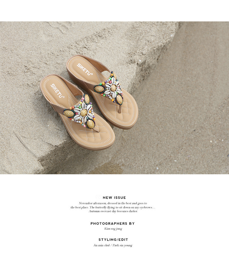 Bohemian ethnic style thick bottom sandals.