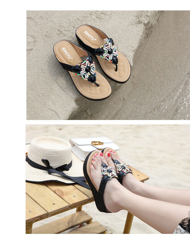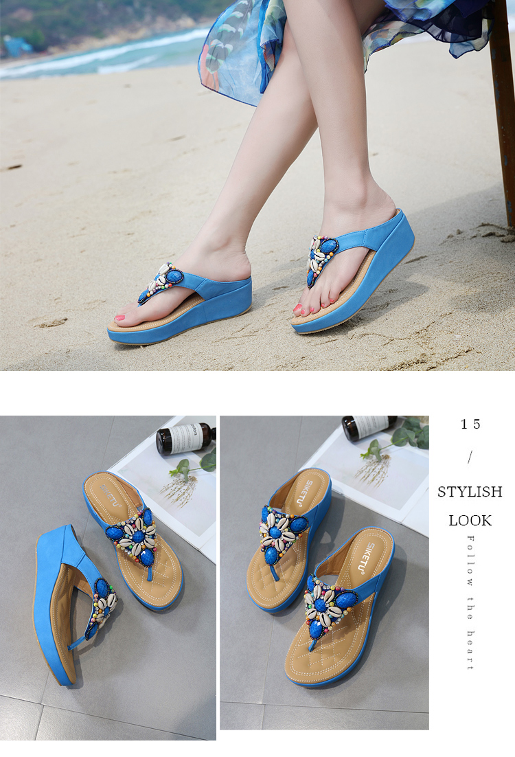 Bohemian ethnic style thick bottom sandals