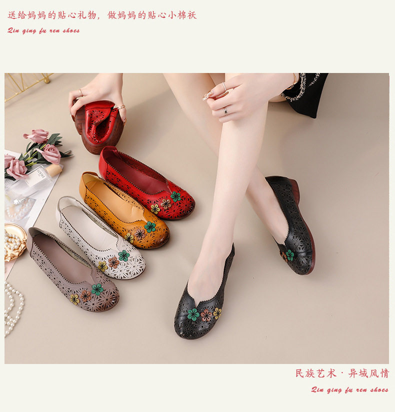 Ethnic Style Genuine Leather Hollow-Out Sandals for Women