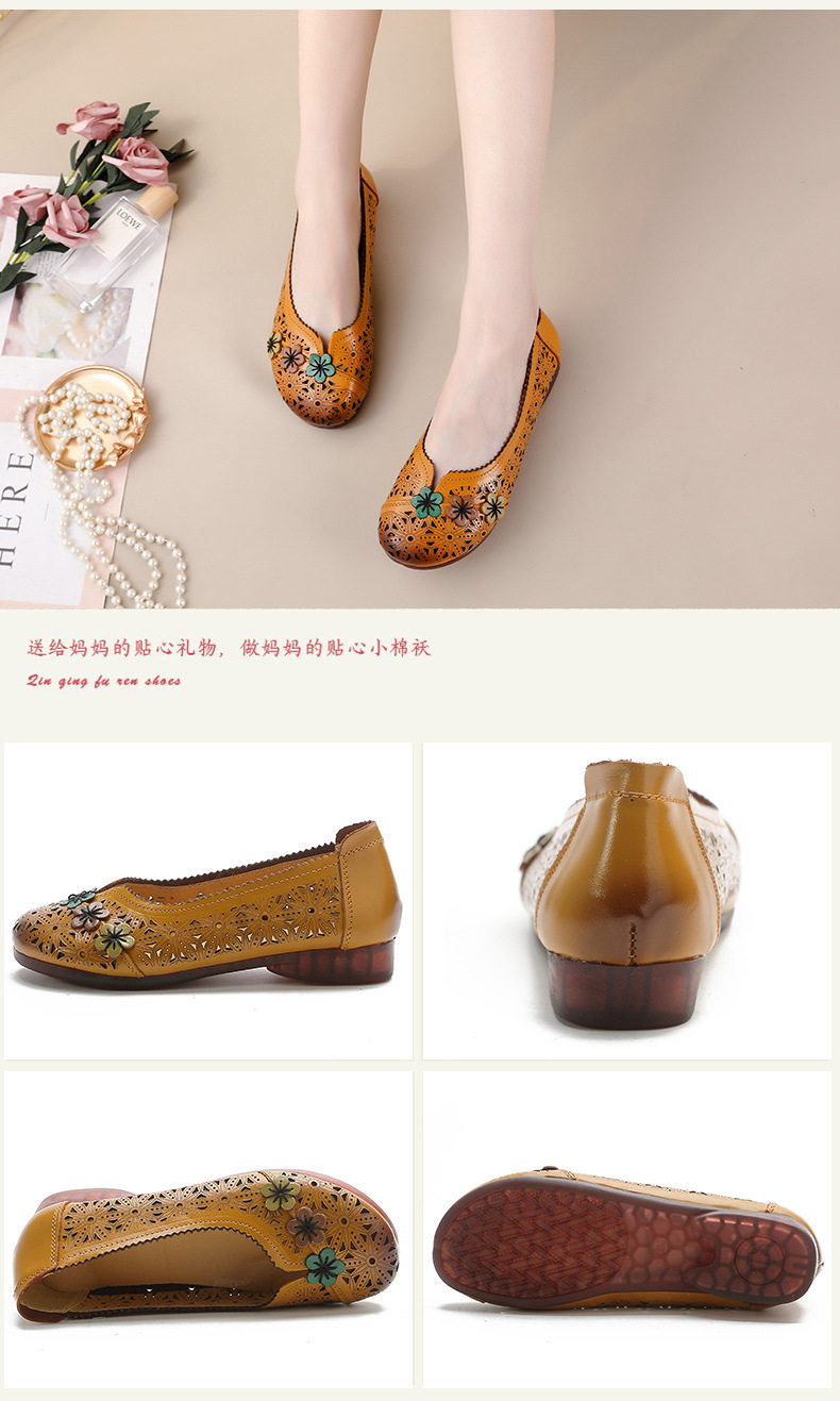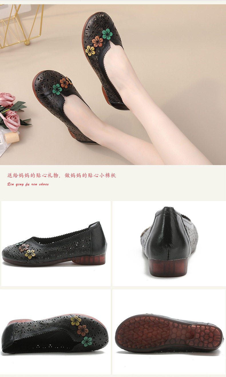 Women Shoes Breathable soft leather mid-heel