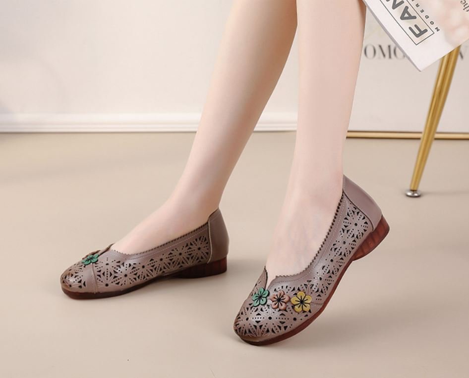 Women Shoes Breathable soft leather mid-heel