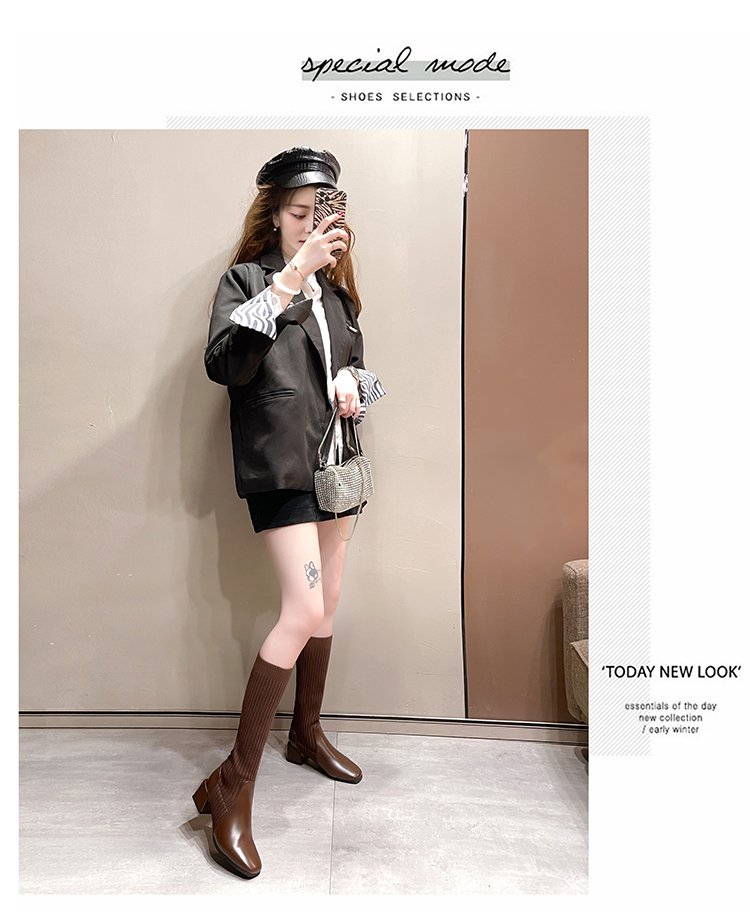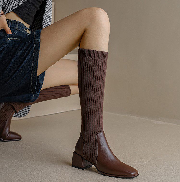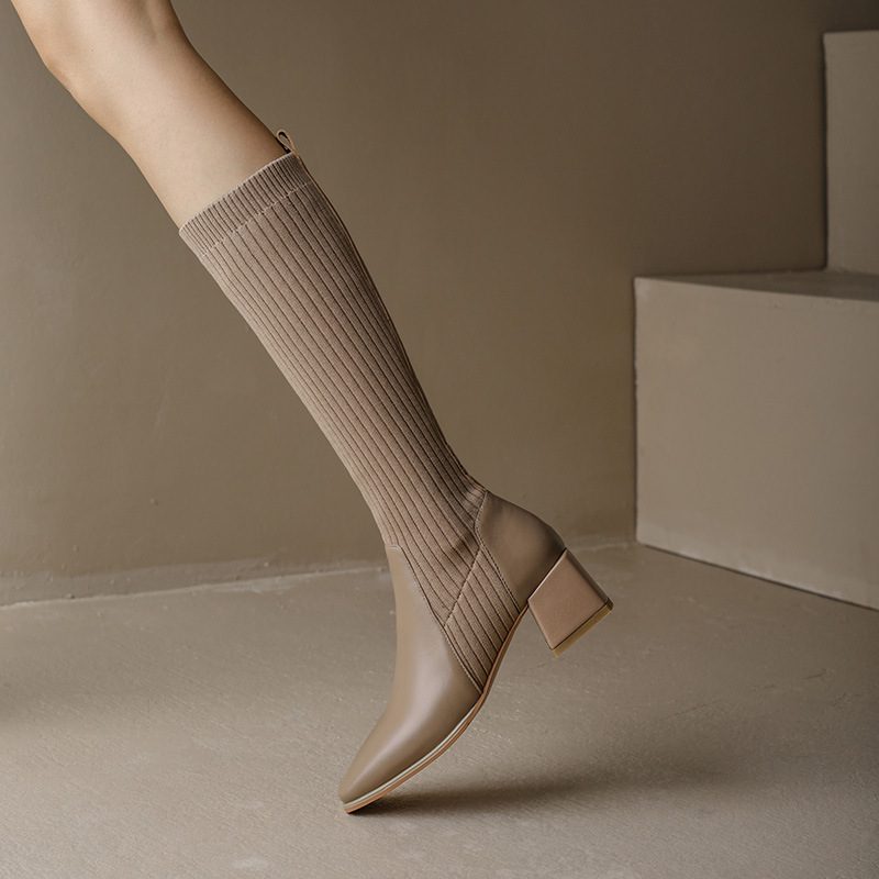 knitted wool elastic skinny boots for women