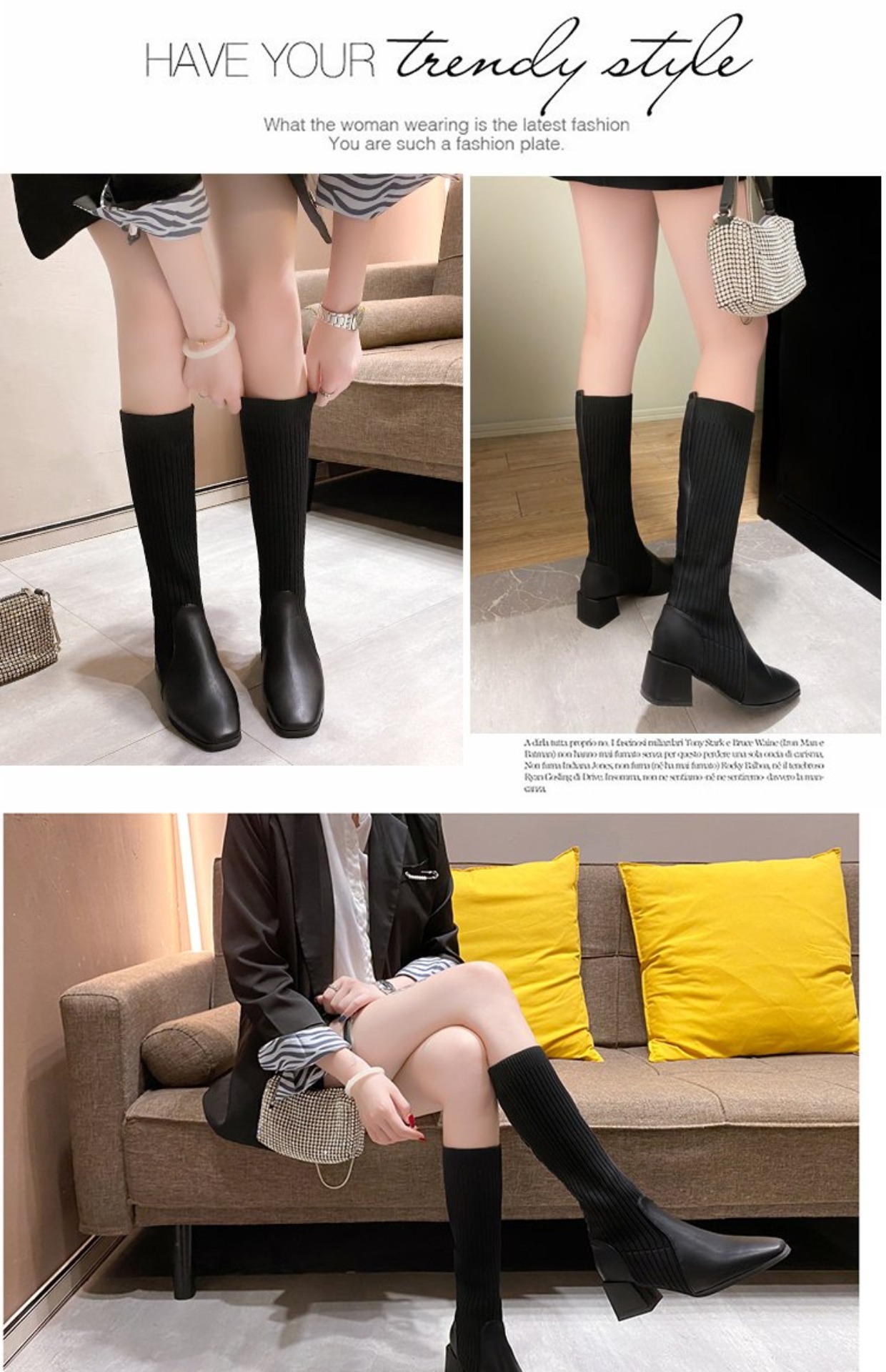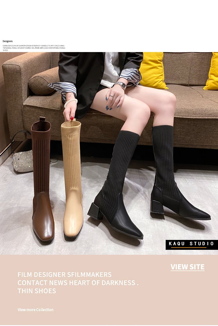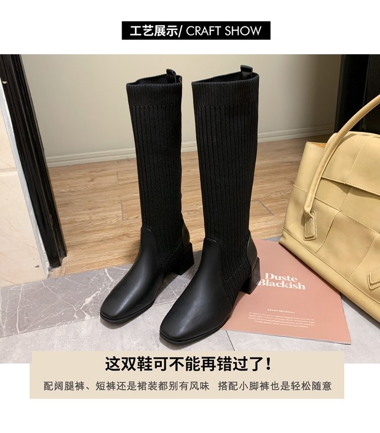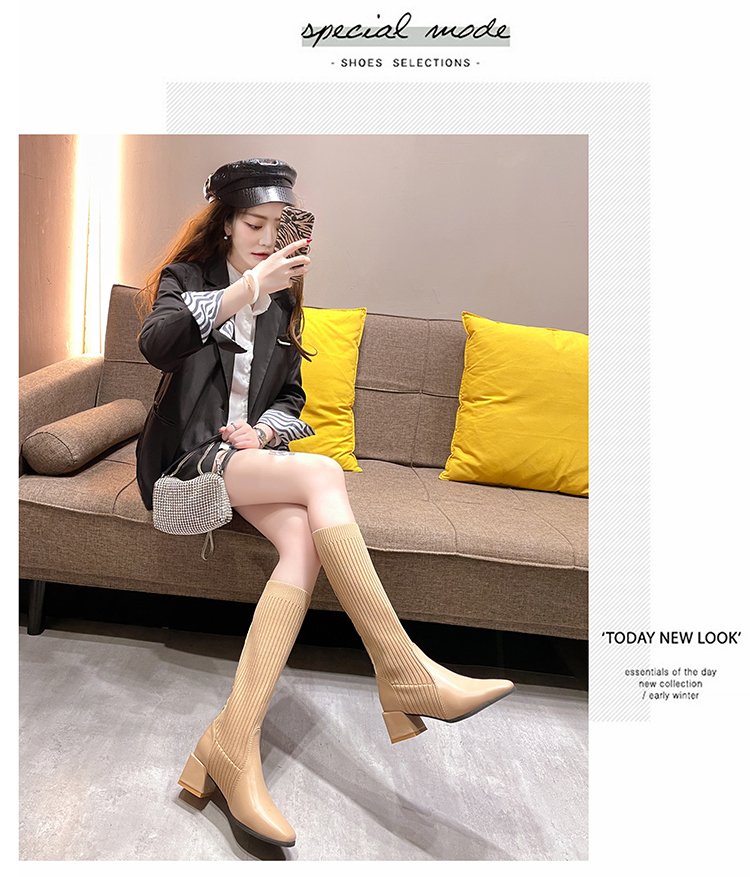 knitted wool elastic skinny boots for women.