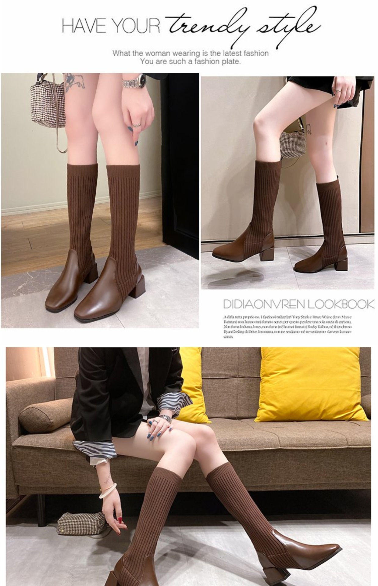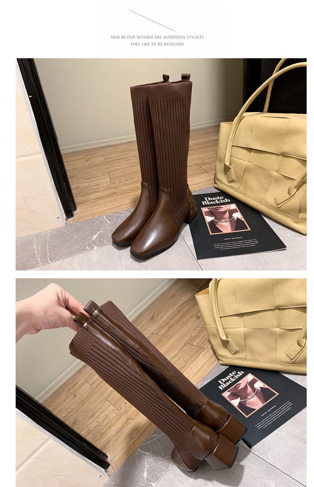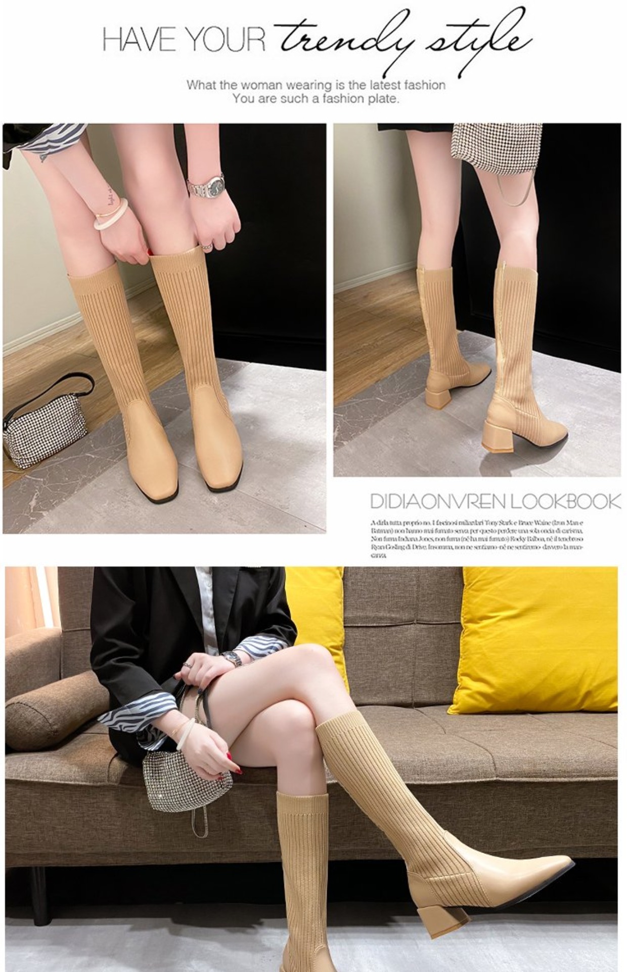 knitted wool elastic skinny boots for women.