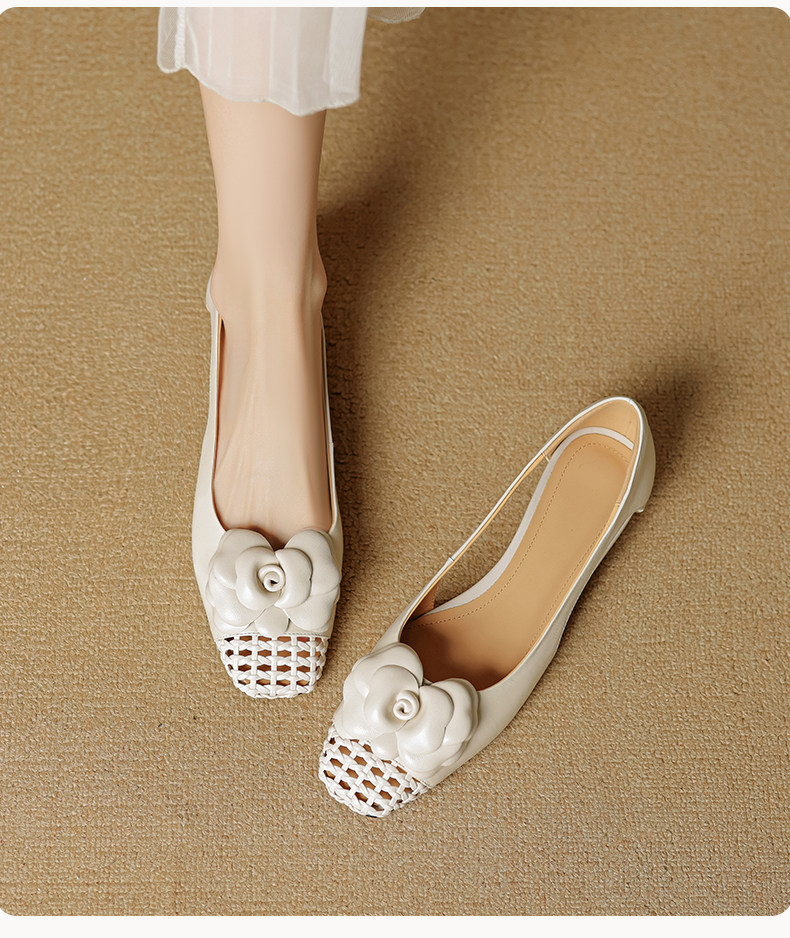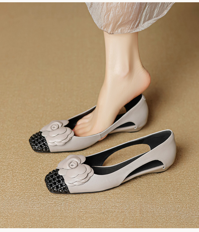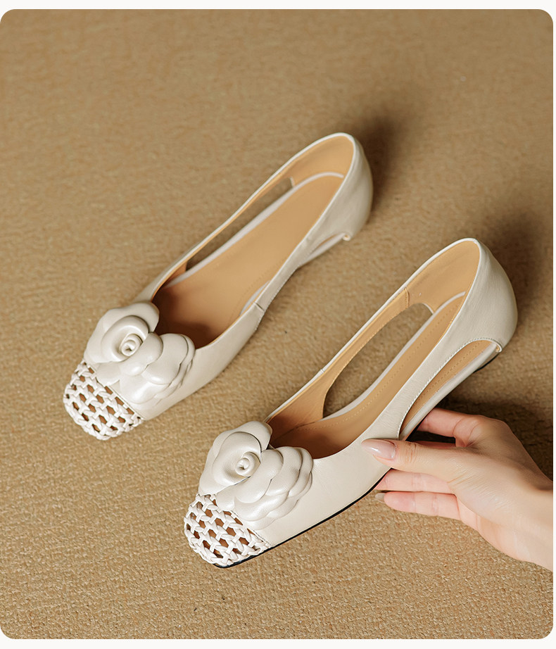 Retro Square-Toe Hollowed-Out Floral Slip-On Shoes
