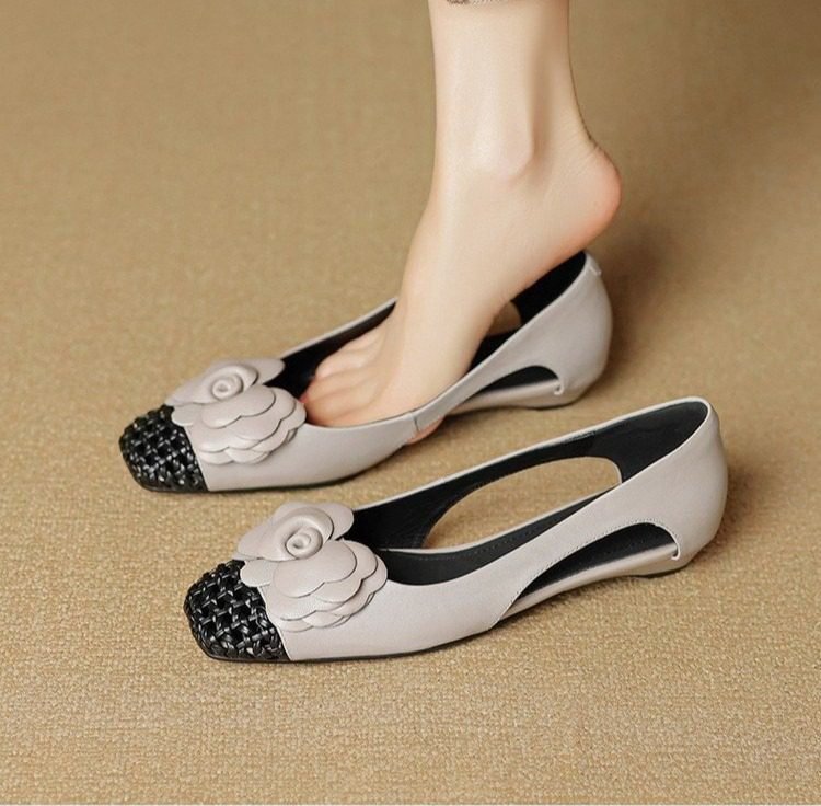 Retro Square-Toe Hollowed-Out Floral Slip-On Shoes