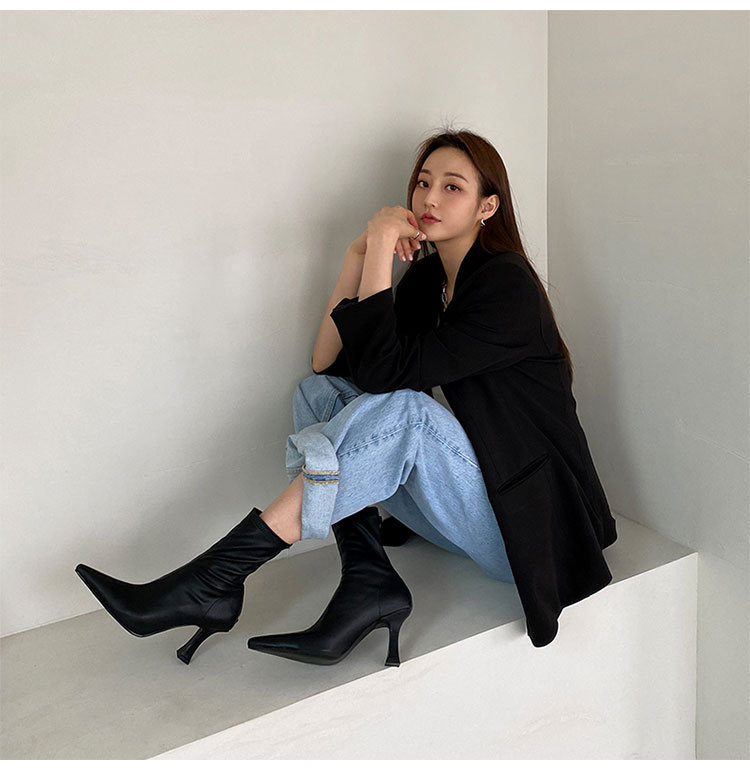 Be the first to review “Small square toe skinny boots genuine leather”
