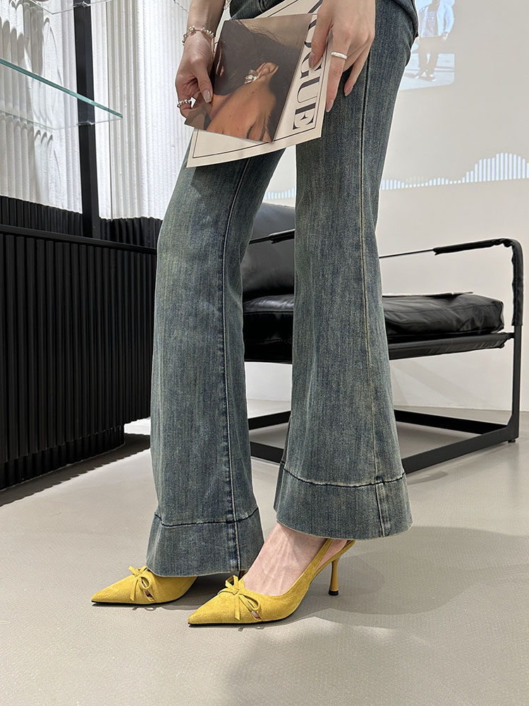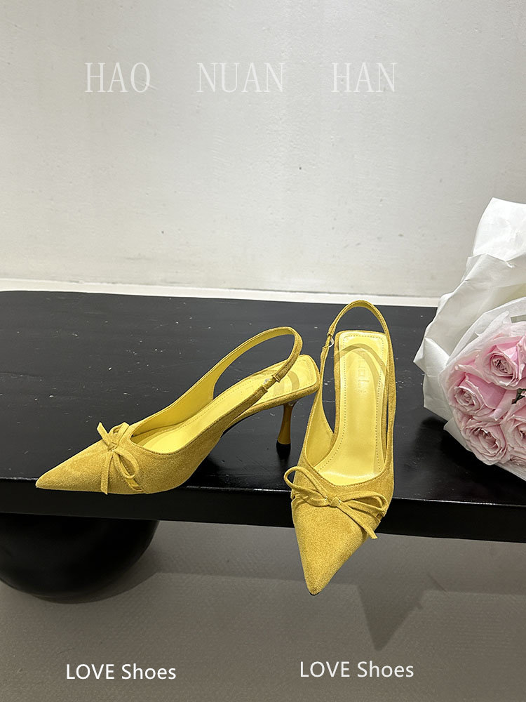 Be the first to review “Suede Pointed-Toe Bow Openwork Sandals” Cancel reply