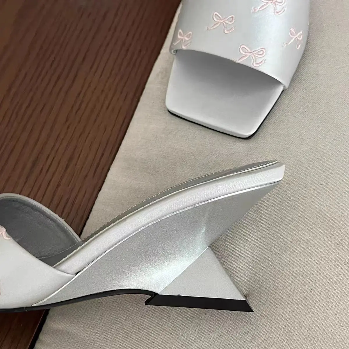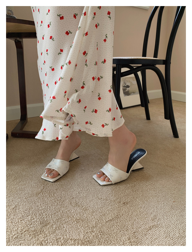 Women’s square-toe wedge one strap unique heel sandals