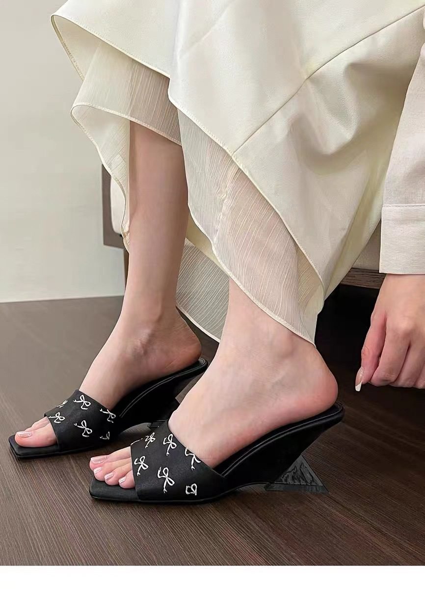 Women’s square-toe wedge one strap unique heel sandals